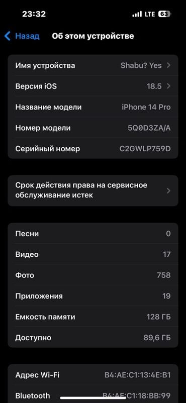 Продаю iPhone 14 Pro, 256 ГБ, чёрный Состояние хорошее. Задняя крышка идеальная, на металлическом ободке есть царапины в углах (от чехла). Дисплей в отличном состоянии, есть небольшая почти незамет...