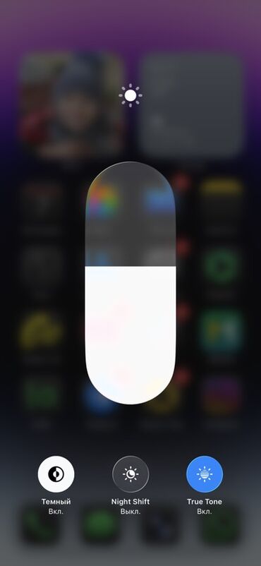 - Отличная яркость и контрастность экрана (пример на скриншоте: True Tone включён, Night Shift выключен, тёмная тема включена)