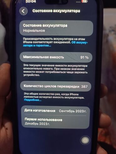 Обязательно прочитайте перед покупкой ! Айфон 15Pro 256 - Blue Titanium Полностью работает идеально без проблем Состояние - Отличное Аккумулятор: 87% родное 1-2 дня держит Комплект - зарядка ...