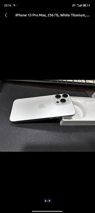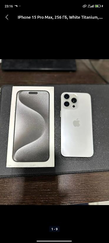 IPhone 15 Pro Max, Б/у, 256 ГБ, Natural Titanium, Зарядное устройство, Защитное стекло, Чехол, В рассрочку, 90 %