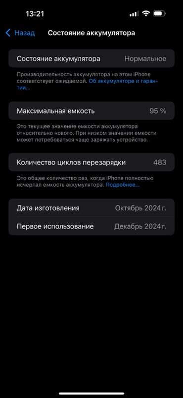 - Состояние аккумулятора: нормальное (по данным iOS).
