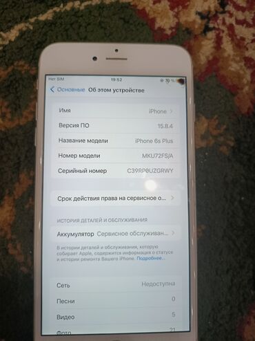- Модель: iPhone 6s Plus (Model Number: MKU72FS/A)