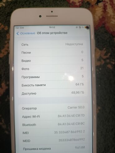 - Количество медиа на устройстве: песни 0, видео 5, фото 21