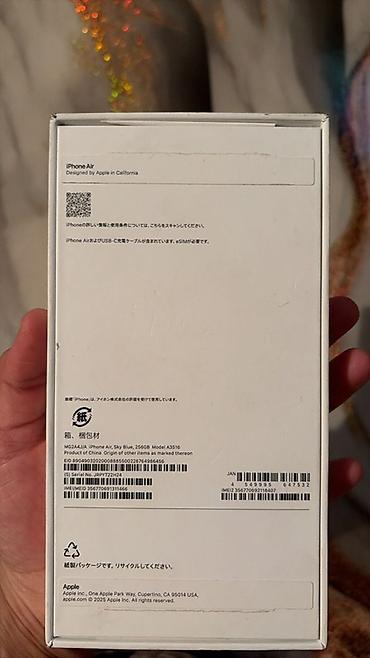 - Указан на коробке: iPhone Air, 256GB, Sky Blue, модель A3516.