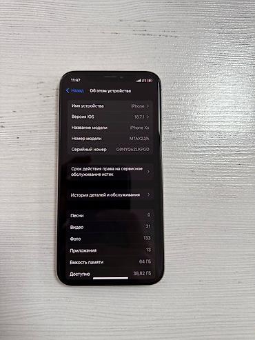 Модель Айфон ХР Зарегистрирован Состояние 10/10 идеально Память 128Гб АКБ 74% Все детали родное Фейс ✅ Тритон ✅ Цена 11000с Без торга и обмена Есть доставка по городу 400сом