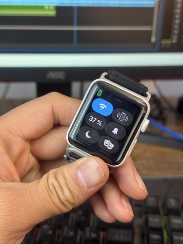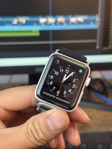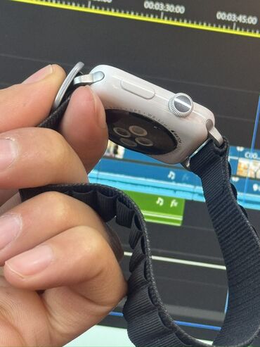 Apple Watch Series 2, 42 мм — керамический корпус (white), сапфировое стекло, керамическая задняя крышка. Черный нейлоновый ремешок с регулировкой.