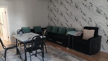 - Просторная гостиная: угловой диван, широкое кресло, набор декоративных подушек, журнально-обеденная зона с обеденным столом под мрамор и 4 стульями.