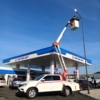 - Компактная автовышка на базе пикапа: удобно работает во дворах, узких проездах и вдоль фасадов.
