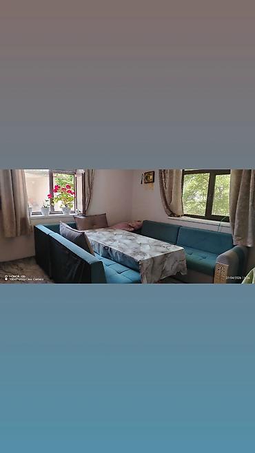 - Мягкие диваны в бирюзово-сером тоне с подушками.