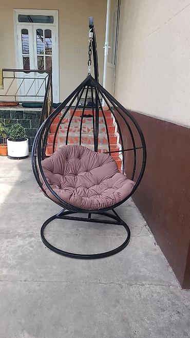 Подвесное кресло-кокон и садовые качели с навесом — кованный металлический дизайн.