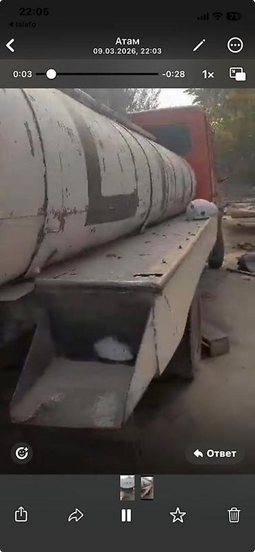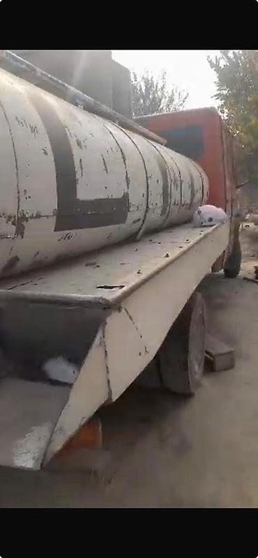 - Металлическая цилиндрическая цистерна, установлена продольно на раме грузовика.