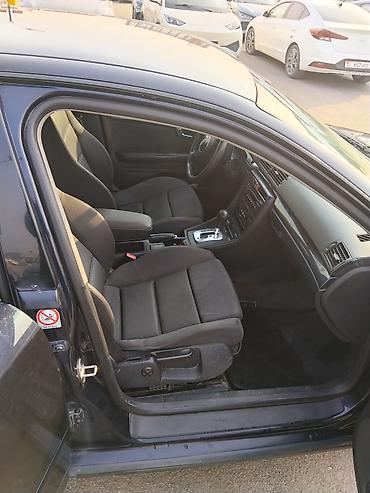 Audi A4 седан, поколение B6. Черный цвет кузова, 4 двери, просторный салон с тканевой обивкой. Автоматическая коробка передач. Литые диски Audi, дисковые тормоза по кругу. Передний и задний противотуманные фонари, галогенные фары. Электропакет: стеклоподъемники, зеркала. Центральная консоль с штатной мультимедией/магнитолой и климат-блоком, подлокотник, подстаканники, бортовой компьютер. Розетка 12V, ABS, подушки безопасности. Задний парой выхлопных патрубков. Номерные знаки KG установлены. Отличный городской седан с комфортной посадкой и добротной шумоизоляцией.