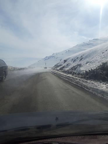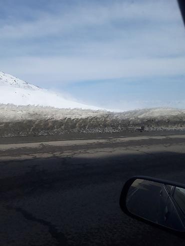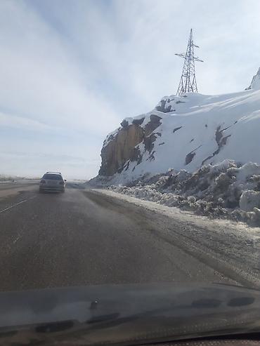 - Маршрут проходит по асфальтированной горной дороге со снегом по обочинам и панорамными видами хребтов.