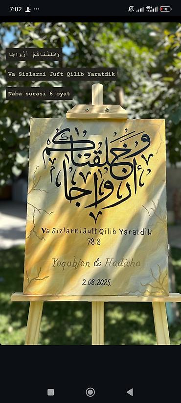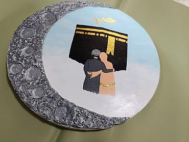 Декоративные панно в восточном стиле с арабской каллиграфией Комплект авторских работ: 1) Прямоугольная картина в раме. Левая часть — стилизованное изображение Каабы в глубоких черных тонах с золо...