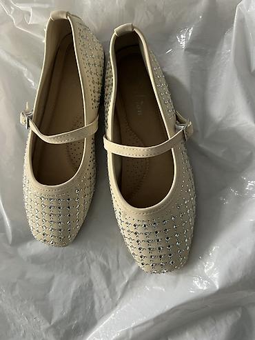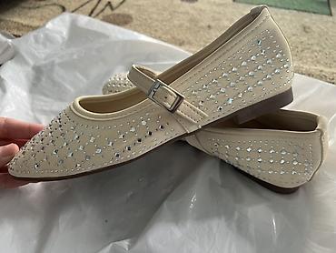Балетки с ремешком Mary Jane, бежевые, со стразами - Материал верха