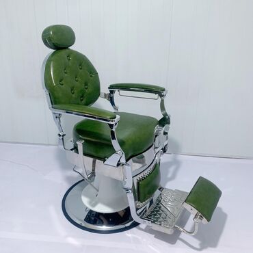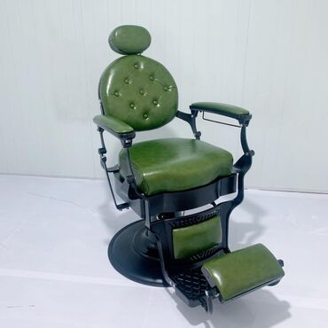 Барбер-кресло в ретро-стиле - Обивка: зеленая экокожа с капитоне