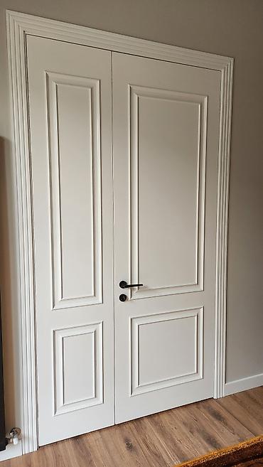 Межкомнатные двери в классическом стиле - Полотна распашные, окрашенные в белый цвет с матовым финишем. - Филенчатый дизайн с декоративными карнизными профилями: одна модель глухая с тремя нижними...