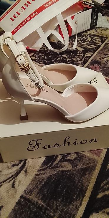 Белые женские туфли на каблуке-«рюмочке».