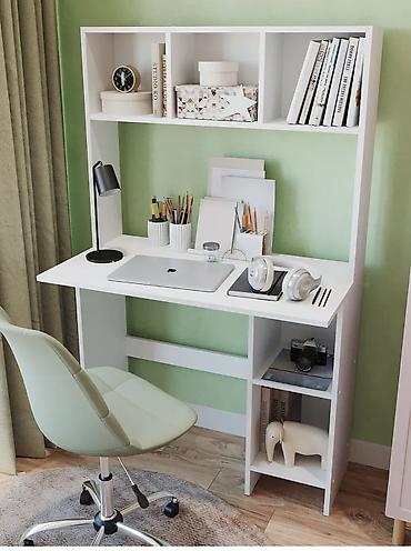 Письменный/компьютерный стол с открытым стеллажом ( стул не входит в комплект!) Адрес Чуй 204, ТЦ Берекет Гранд 3-этаж - Компактная прямая столешница — удобно для ноутбука, учебы, письма и хобби....