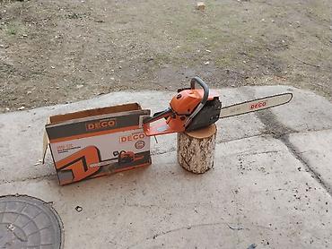 - В комплекте: пила с установленной шиной и цепью; фирменная коробка DECO