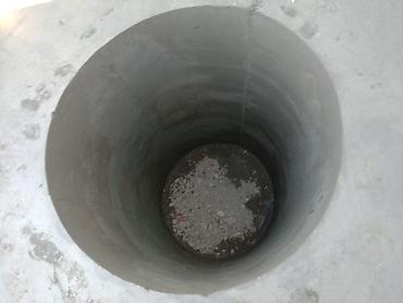 Бетонный резервуар круглой формы, предназначенный для хранения воды. Оснащен люком для доступа к содержимому. Идеально подходит для использования в качестве колодца, септика или накопительной емкости для воды на дачном участке или в частном доме.