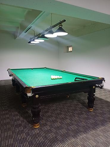 - Освещение: потолочная бильярдная люстра на 5 плафонов, равномерный свет по всей поверхности