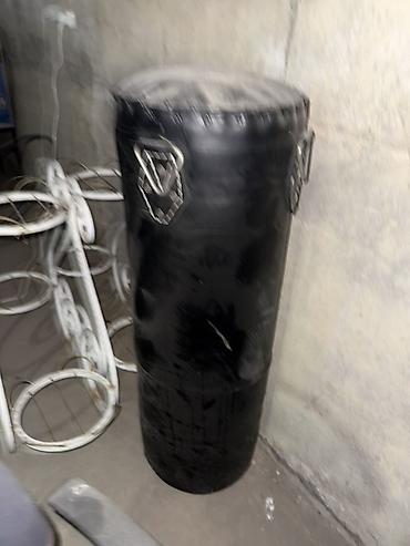 - Тяжёлый цилиндрический боксёрский мешок классической формы. Обшивка — чёрная износостойкая искусственная кожа/винил. Верх прошит по кругу шнуровкой. С четырёх сторон установлены мощные треугольные металлические проушины для подвеса на цепях/карабинах.