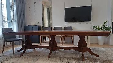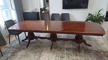 Большой обеденный стол из массива (дерево), классический дизайн. 244см×122 см каждый из половин, что даёт общую длину 4.88 метра, и соответственно 1.22 метра ширину. Требуется мелкая реставрация. ...