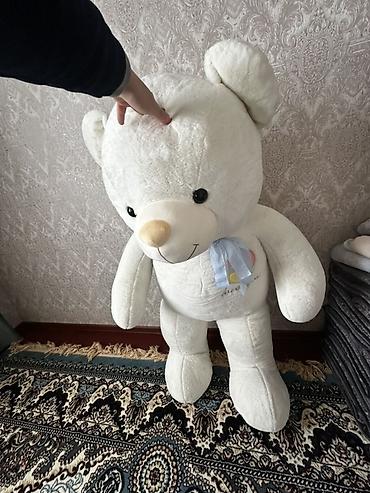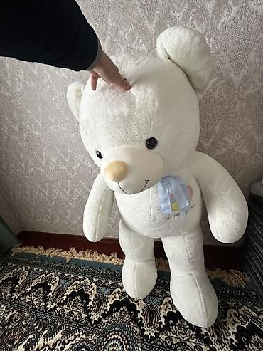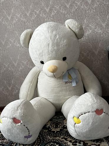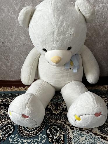 Большой плюшевый медведь с сердцем - Рост: 1.50, напольный формат (гигантский). - Цвет: кремовый/бежевый. - Мордашка с вышитой улыбкой, черные глаза-пуговки, светло-коричневый носик. - В лапах мяг...