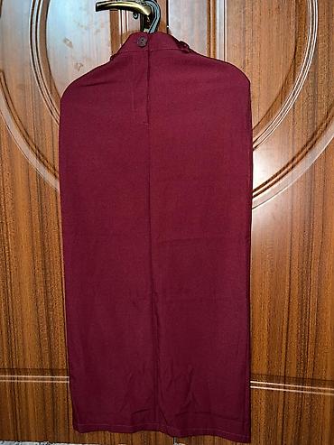 - Юбка: прямая миди, сзади застёгивается на пуговицу и молнию (застёжка сверху, см. фото). Длина ниже колена.
