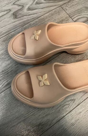 Туфли свадебные новые один раз были одеты, размер 39 производство Турция. 550 сом Шлепки 38 размер новые. Цена 350 сом. Высота платформы на пятке 6 см очень удобные. Звонить. г. Бишкек
