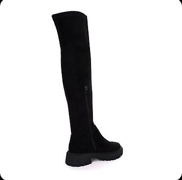 Женские высокие сапоги-ботфорты - Цвет: черный - Материал верха: бархатистая натуральная замша/велюр. Внутри натуральная кожа. - Высота: выше колена - Носок: слегка заостренный - Каблук: устойчивы...