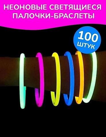 Неоновые светящиеся палочки-браслеты — набор 100 штук.