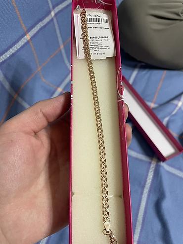 Золотой браслет, плетение «якорное» (двойное), с биркой и коробочкой.