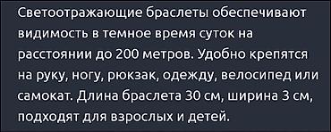 - Назначение: повышение видимости пешеходов, бегунов, велосипедистов и детей в тёмное время суток. Видимость до 200 м.