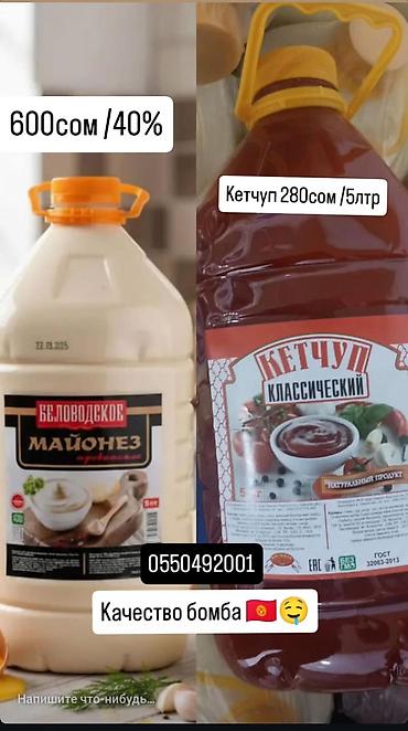 - Майонез 40% — 600 сом за 5 л.