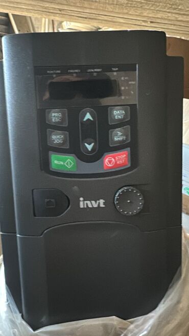 - Бренд: INVT (на панели управления – кнопки RUN/STOP, PRG/ESC, DATA/ENT, QUICK/JOG, SHIFT; стрелки управления и регулятор-энкодер).