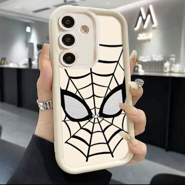 - Дизайн: крупная паутина и «глаза» на матовом фоне; аккуратные вырезы под разъемы и кнопки; совместим с кабелями стандартной толщины.