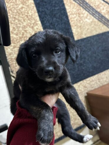 Щенок, черный с белыми отметинами на грудке и кончиках лап. Короткая гладкая шерсть, мягкие уши, выразительные тёмные глаза. Компактный, лёгкий, аккуратные лапы и хвост. Ласковый и контактный — охотно идёт на руки, любит внимание, спокойно лежит на коленях. Активность умеренная: интересуется окружающим, но не шумный. Подойдёт для квартиры или дома, будет верным компаньоном для семьи и одиночек.