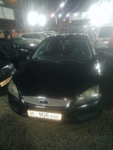 Ford Focus, седан, черный цвет кузова. Киргизские номера G6 KG 908 AOC.