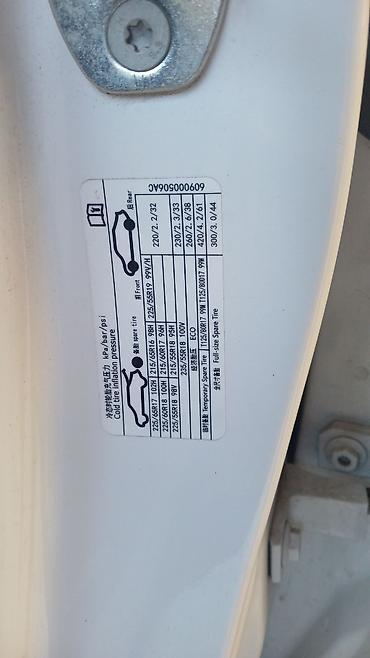 - Колеса: легкосплавные диски, штатные размеры шин по табличке – 225/55R19 99V/H, допускаемые варианты: 215/65R17, 225/60R18, 235/55R18 и др.; давление (хол.) перед/зад: 230/2.3–260/2.6 кПа в зависимости от размера; предусмотрено полноразмерное запасное колесо (225/60R17 99H).