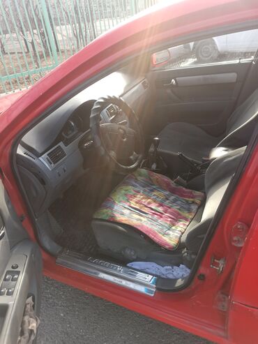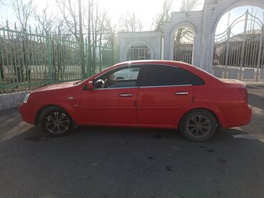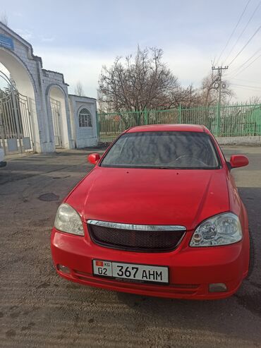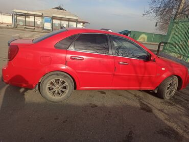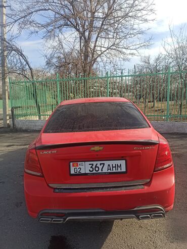 Chevrolet Lacetti седан, ярко‑красный цвет. Комплектация на кузове отмечена как Exclusive.