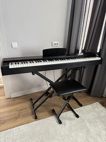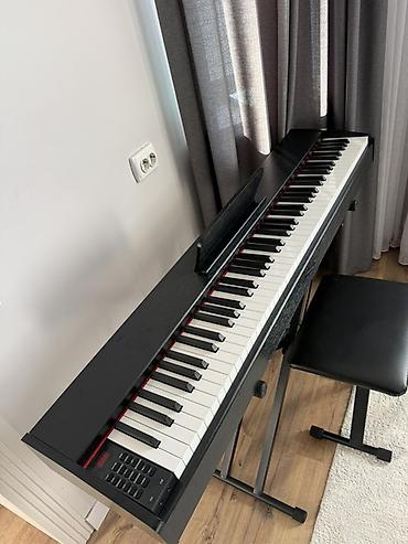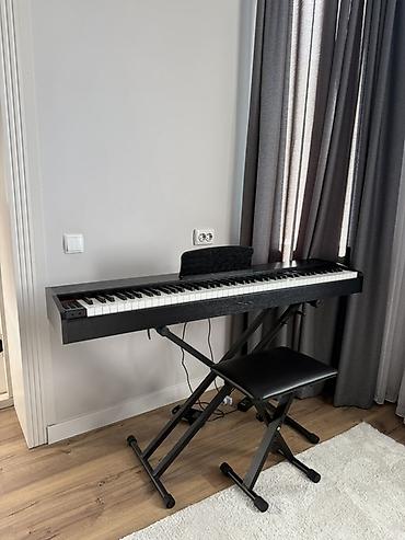 Цифровое пианино с полной клавиатурой 88 клавиш на стойке-«икс» и складным табуретом.