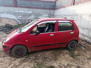 Daewoo Matiz, 5‑дверный хэтчбек, красный цвет. Ключевые особенности: - Компактный городской автомобиль с экономичным бензиновым мотором. - Механическая коробка (по габаритам и рычагу в салоне хара...