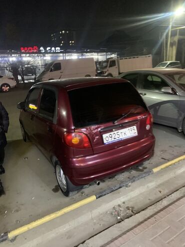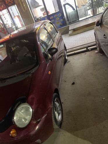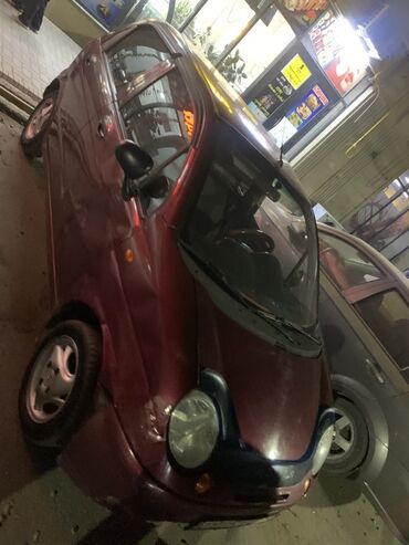 Daewoo Matiz, 5‑дверный хэтчбек, бордовый цвет. Компактный городской автомобиль с округлым дизайном, удобный для тесной парковки и экономичных поездок.