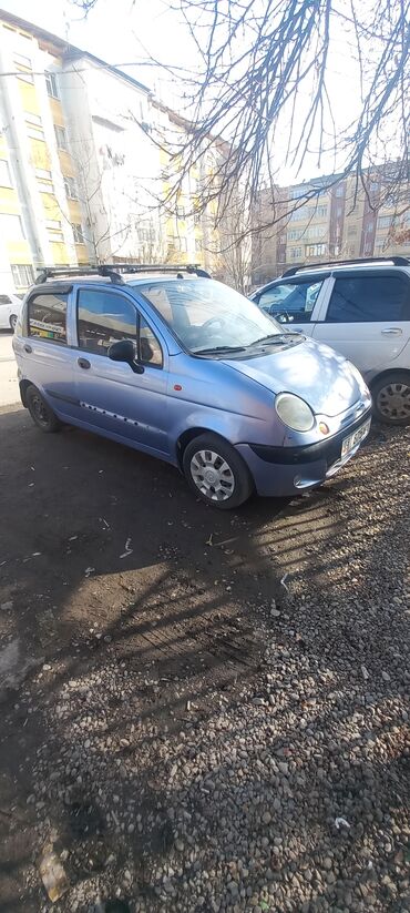 Daewoo Matiz, 5‑дверный хэтчбек, голубой цвет. Ключевые особенности: - Компактные габариты, удобен для города и парковок. - Экономичный бензиновый двигатель, механическая коробка передач. - 4 мест...