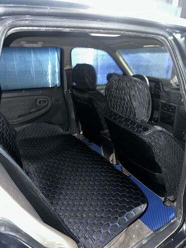 - Передние сиденья с чехлами с сотами (черные с синим).