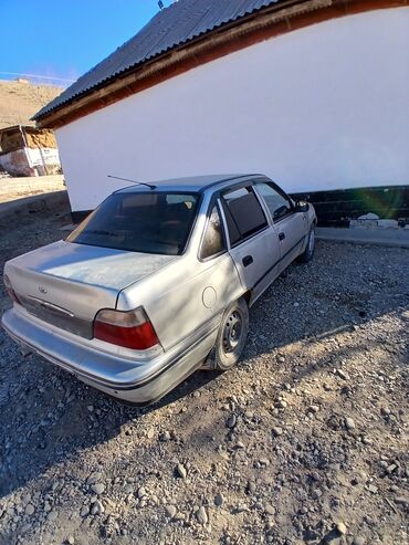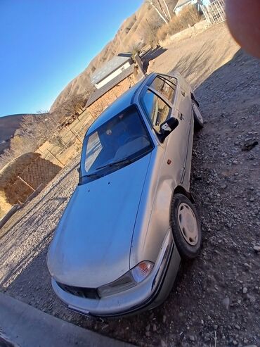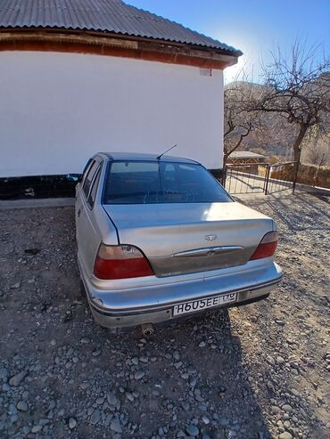 Daewoo Nexia, седан, серебристый цвет кузова. Классический 4‑дверный кузов с просторным салоном и багажником. Задние фонари раздельные, антенна на крыше, тонированные стекла заднего ряда, наружные зеркала с ручной регулировкой. Стальные 13–14" диски, запаска в багажнике. Бампера и молдинги в цвет кузова с черной защитной полосой, пластиковые колпаки (частично отсутствуют). Топливо — бензин, привод передний. Компоновка салона: 5 мест, тканевая обивка, задняя спинка полностью, стеклоподъемники передние ручные. Центральный замок и сигнализация не просматриваются на фото. Кузов с традиционной для модели геометрией, простая и недорогая в обслуживании подвеска МакФерсон спереди и полузависимая сзади. Подходит для городских и пригородных поездок, экономичная и неприхотливая модель с широким выбором недорогих запчастей.