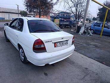Daewoo Nubira, седан, белый цвет, год выпуска: 2000. Бензиновый двигатель 1.5 л, привод передний. Кузов 4-дверный, тонированные стекла, боковые повторители поворота. Салон тканевый, серый, задний р...