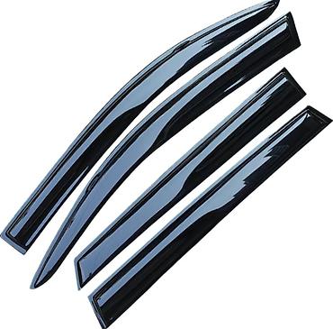 - Преимущества: защищают от брызг при открытом окне, улучшают циркуляцию воздуха, придают автомобилю аккуратный, слегка тонированный вид.